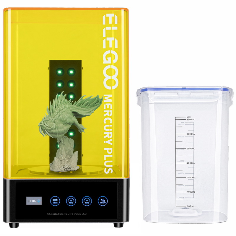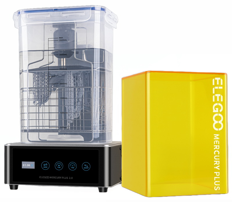 Elegoo Mercury Plus 2.0 — это современное комбинированное устройство для постобработки фотополимерных моделей, объединяющее в одном корпусе мойку и УФ-камеру полимеризации. Оно обеспечивает полную очистку от остатков смолы и её равномерное окончательное отверждение, превращая «сырую» модель в готовое изделие.