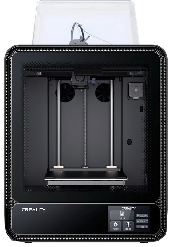 Новинка от Creality имеет красивый, гладкий, матовый, кубический корпус чёрного цвета. Кроме того, принтер оснащен встроенными светодиодными индикаторами и тремя прозрачными окнами — для полного контроля над процессом печати.