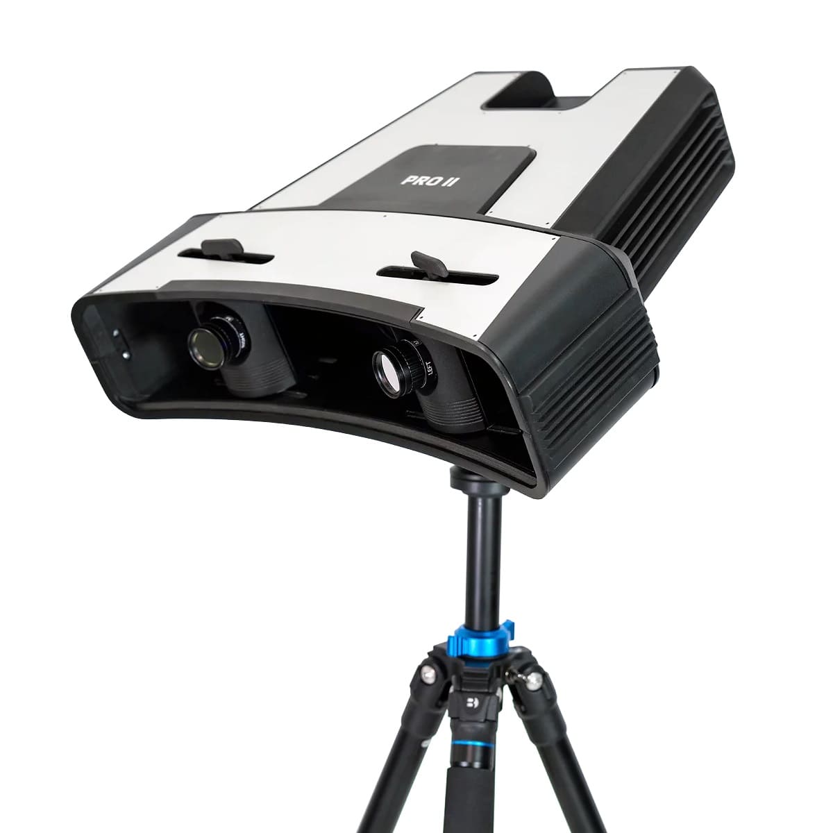 PRO II оснащён двумя камерами технического зрения с разрешением 6 Мп, оснащёнными светофильтрами для подавления внешнего освещения. В сочетании с мощным LED-проектором синего света и технологией структурированной подсветки сканер захватывает геометрию с исключительной детализацией. Оригинальные алгоритмы обработки данных обеспечивают стабильную и воспроизводимую точность измерений.