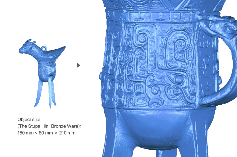 Сканер обеспечивает точность до 0,035 мм и поддерживает экспорт данных в форматах: OBJ, STL, PLY.