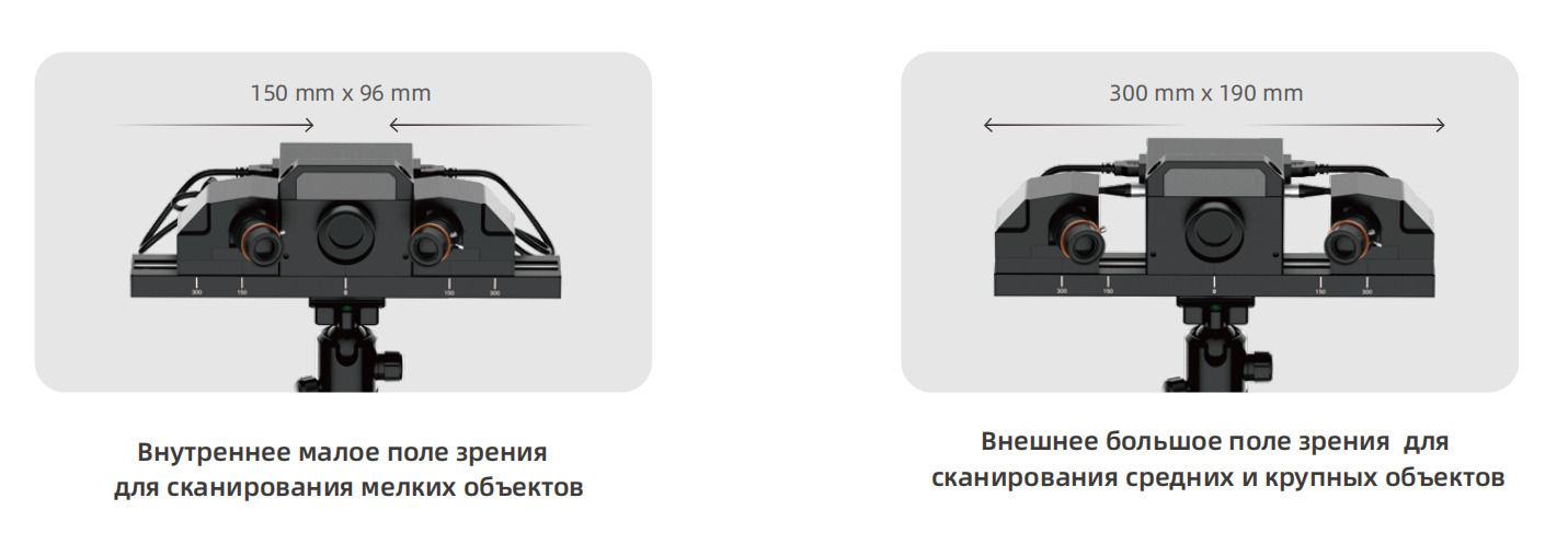- Возможность смешивать разрешения в одном проекте — сканер автоматически переключается между тремя уровнями детализации для оптимизации скорости и качества;