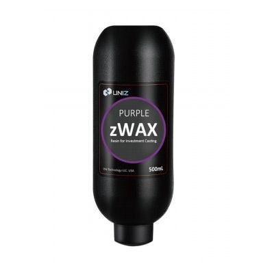Фотополимер Uniz zWAX - это смола с 10% содержания жидкого воска. Смола обладает низким тепловым расширением во время выжигания, также почти нулевой зольностью - все это позволяет не оставлять следов после выжигания.
