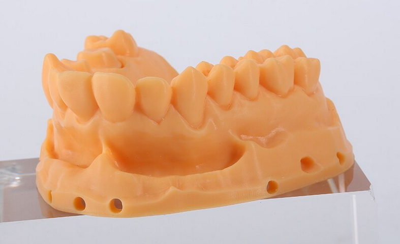 Этот фотополимер особенно хорош для использования в ортодонтии. Напечатанные из него модели могут без ущерба для своей структуры выдерживать кратковременное воздействие высоких температур и способны сопротивляться высокому давлению. Смола обеспечивает высокую точность и детализацию при печати, что полностью удовлетворяет требованиям, которые предъявляются к современным зубным протезам. D01 даёт очень гладкую поверхность и жёсткую структуру модели, позволяя ей сохранять форму и сопротивляться механическим воздействиям.