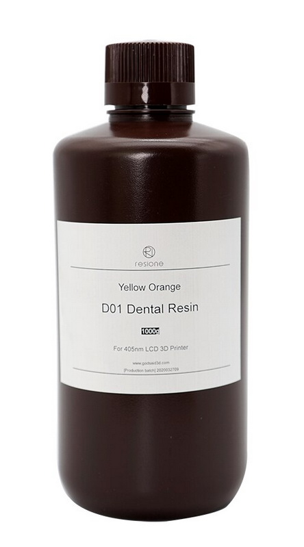 Фотополимер RESIONE D01 — профессиональная смола для использования в сфере стоматологии и ортодонтии, подходящая для печати по технологии LCD, DLP и SLA.