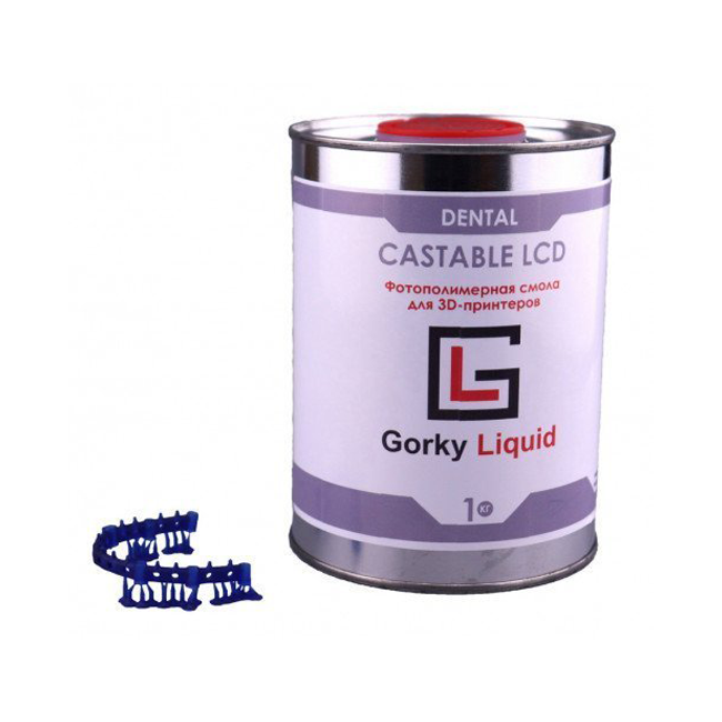 Фотополимер Gorky Liquid Dental Castable LCD - используется для печати на оборудовании LCD/DLP или SLA. Стоматологическая выжигаемая смола может использоваться для прямой отливки протезов из керамики и металла.