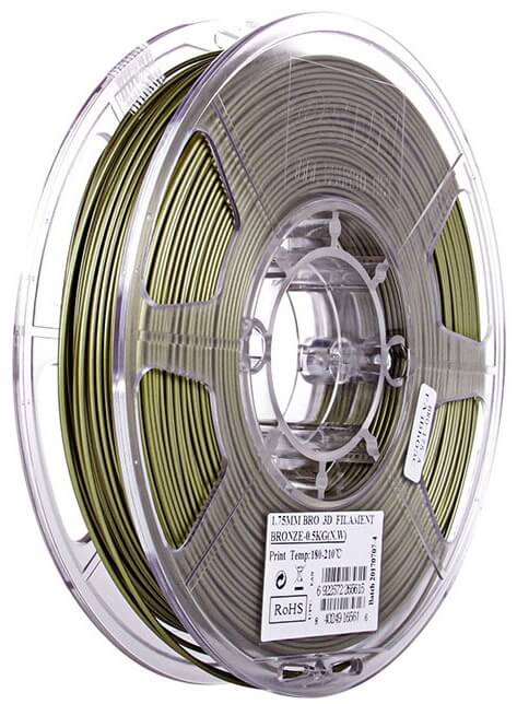 Bronze пластик eSUN для 3D принтера относится к линейке дизайнерских материалов. В его состав добавлена металлическая пудра, что позволяет имитировать металлический блеск и фактуру поверхности бронзы.