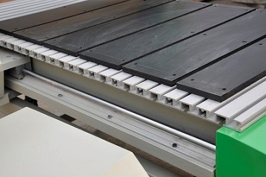Рабочий стол. Механический стол оснащён алюминиевым профилем с T-образными пазами и защитным пластиковым покрытием («жертвенником»), обеспечивающим надёжную