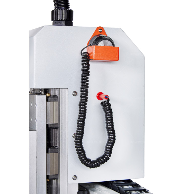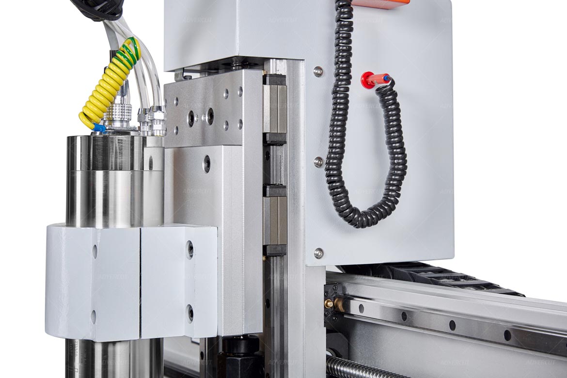 Конструкция станка включает квадратные рельсовые направляющие по всем осям и увеличенный ход по оси Z — 150 мм, что расширяет возможности при работе с объёмными заготовками и цилиндрическими изделиями.