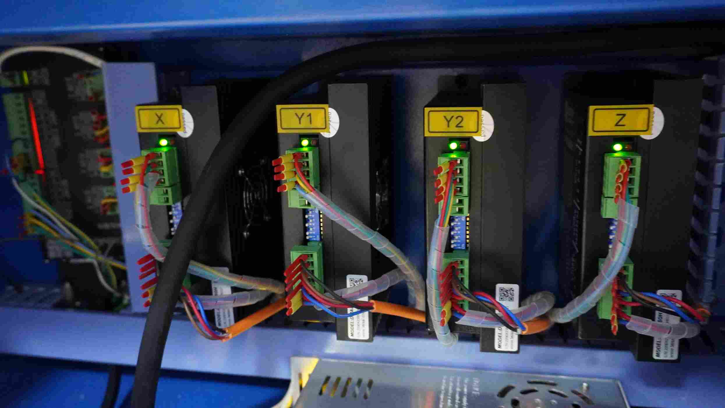 Водяной шпиндель 3,2 кВт. Развивает частоту вращения до 24 000 об/мин и охлаждается с помощью водяного насоса, что обеспечивает стабильную работу при длительных циклах обработки дерева, пластика и акрила.