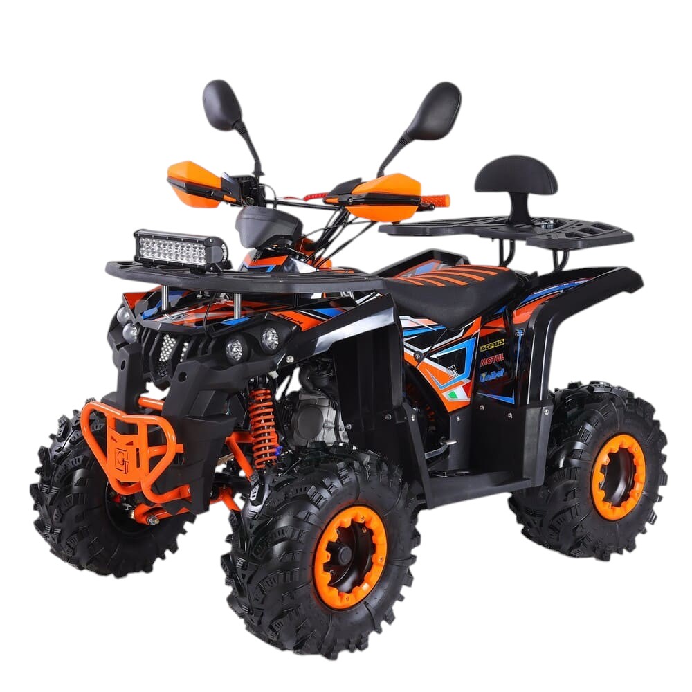GT ATV K125 — это надёжный бензиновый квадроцикл, разработанный для активного отдыха, сельскохозяйственных нужд и эксплуатации на сложных участках. Оснащённый 4-тактным двигателем объёмом 125 см³, он развивает мощность до 9 л.с. и обеспечивает максимальную скорость до 50 км/ч. Двигатель работает на бензине и охлаждается воздушным способом, что делает его простым в обслуживании и устойчивым к перегреву при умеренных нагрузках.