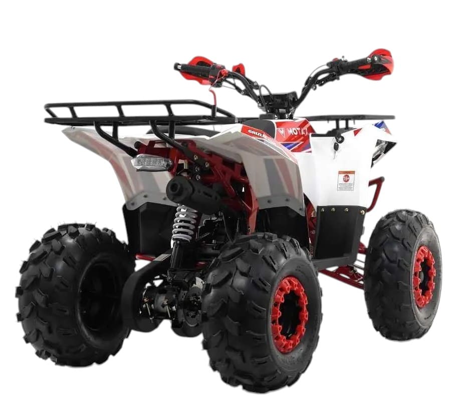 MOTAX GRIZLIK A125 - надежный бензиновый квадроцикл, созданный специально для детей и подростков в возрасте 6-14 лет. Модель оснащена мощным четырехтактным двигателем объемом 125 см³ и мощностью 10 л.с., обеспечивающим отличную динамику разгона. Особого внимания заслуживают высокоэффективные тормоза с легким ходом, что особенно важно для юных водителей. Полуавтоматическая коробка передач с тремя передними передачами и задним ходом обеспечивает простое и комфортное управление.