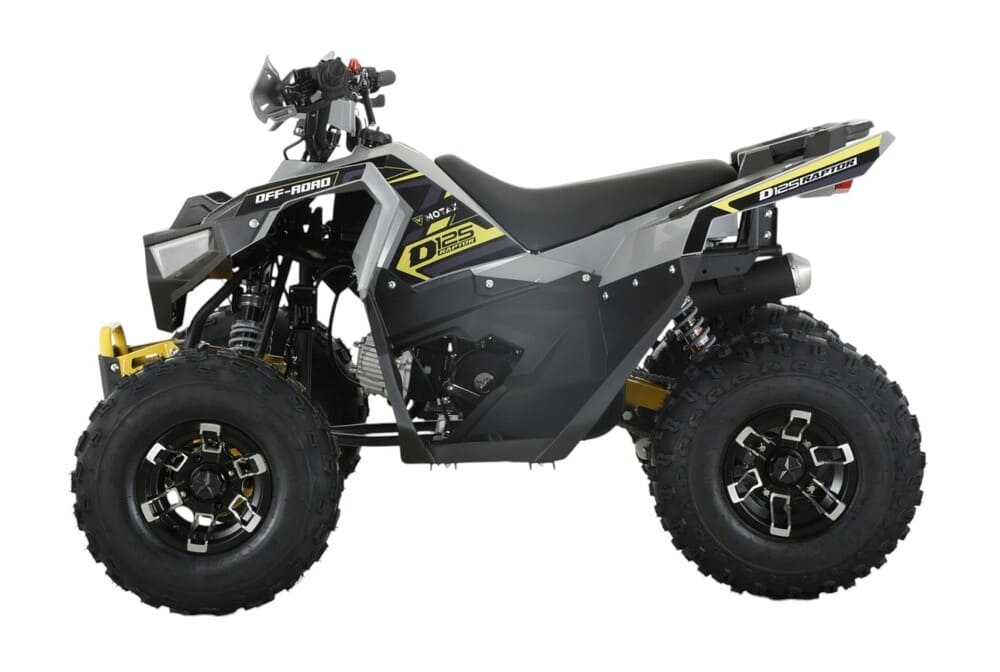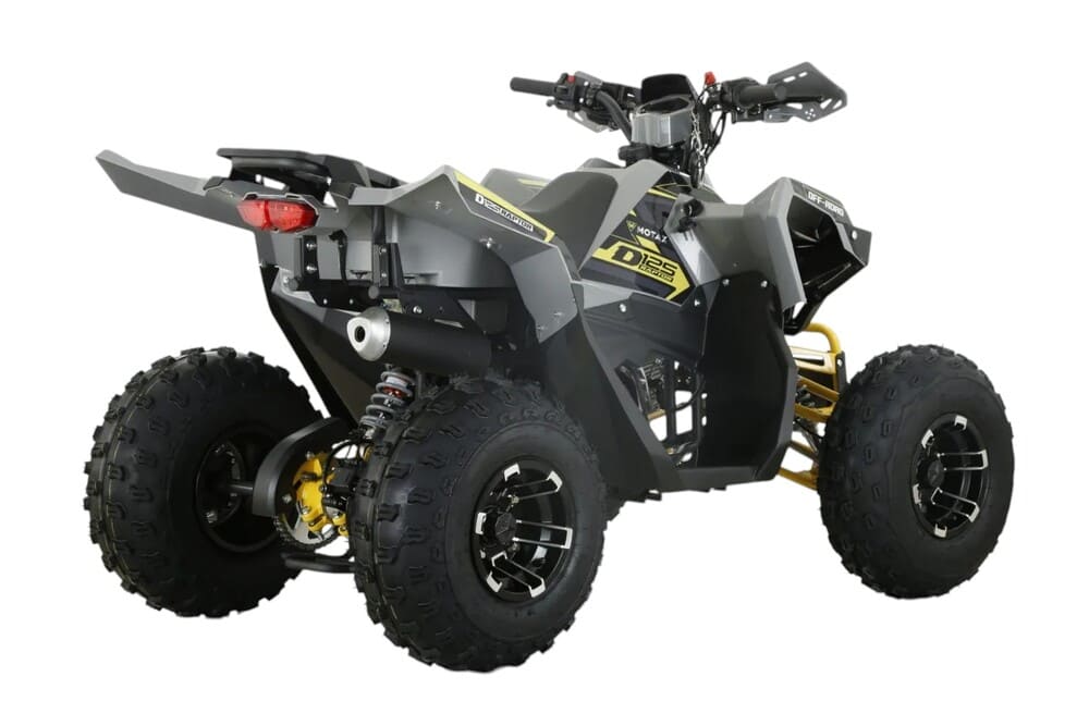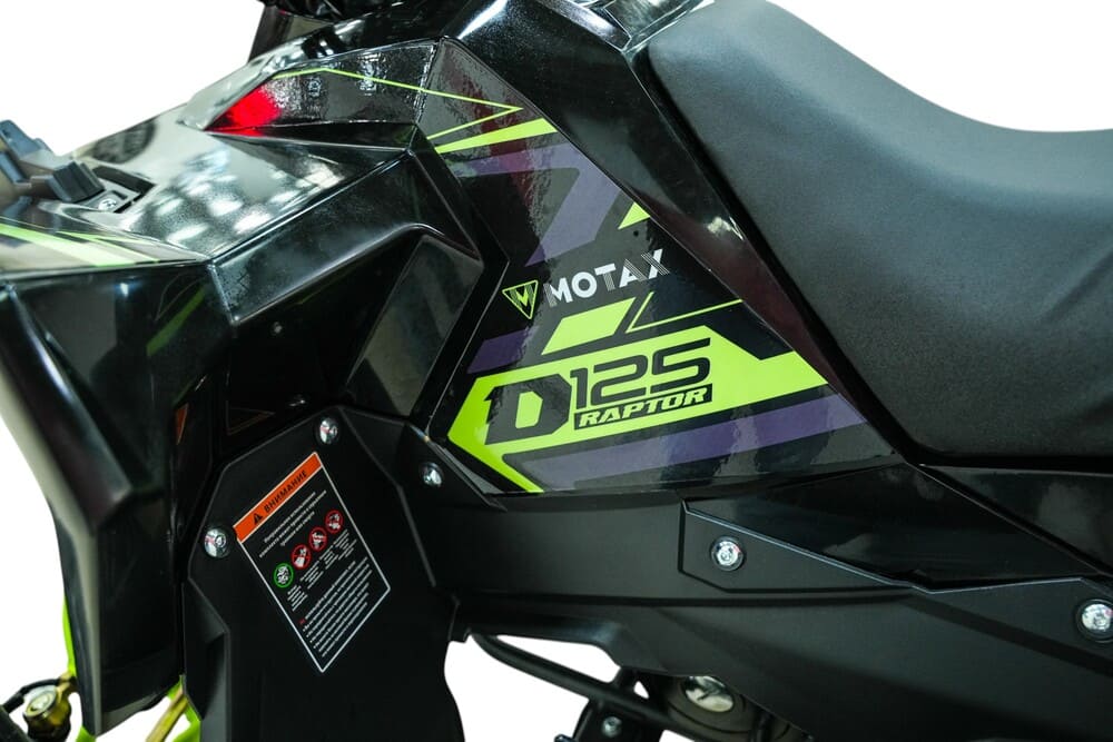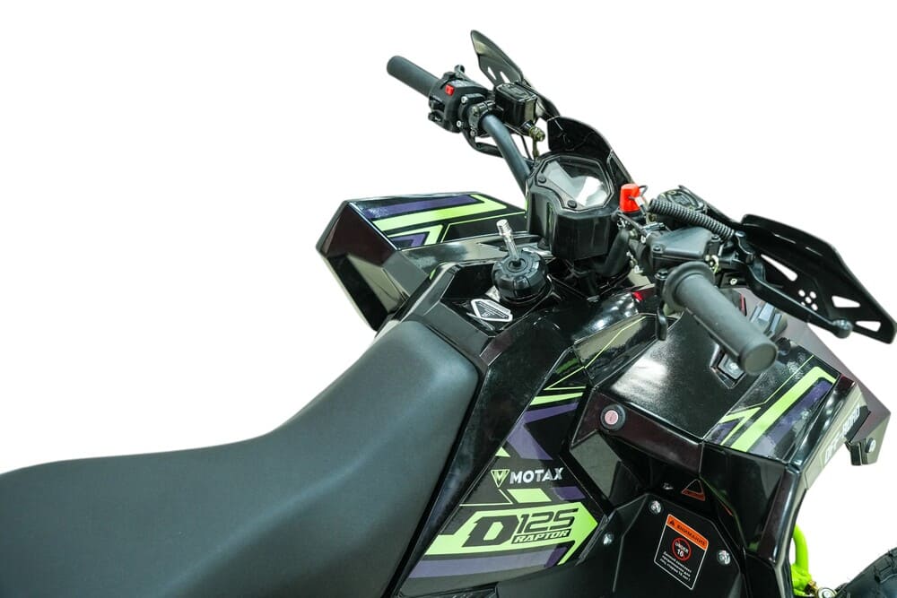MOTAX GRIZLIK RAPTOR D125 — это современный бензиновый квадроцикл, разработанный для активного отдыха и передвижения по бездорожью. Оснащённый 4-тактным двигателем объёмом 125 см³ и мощностью 10 л.с., он развивает скорость до 55 км/ч и обеспечивает стабильную работу даже в сложных условиях. Запуск двигателя осуществляется с помощью электростартера, что делает эксплуатацию простой и удобной в любое время года.