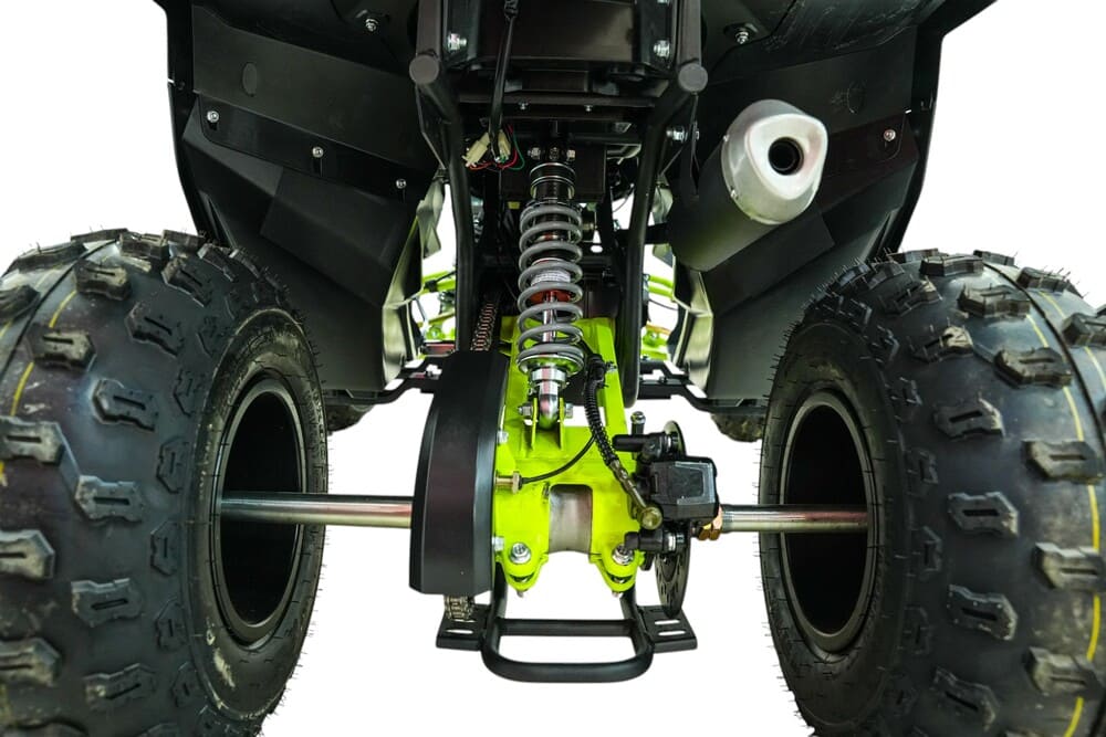 Тормозная система — полностью гидравлические дисковые тормоза на всех колёсах, что обеспечивает мощное, точное и предсказуемое торможение в любых погодных условиях. Прочная стальная рама выдерживает нагрузку до 100 кг. MOTAX GRIZLIK RAPTOR D125 — это надёжный, лёгкий и технологичный квадроцикл, сочетающий в себе проходимость, безопасность и комфорт для всей семьи.