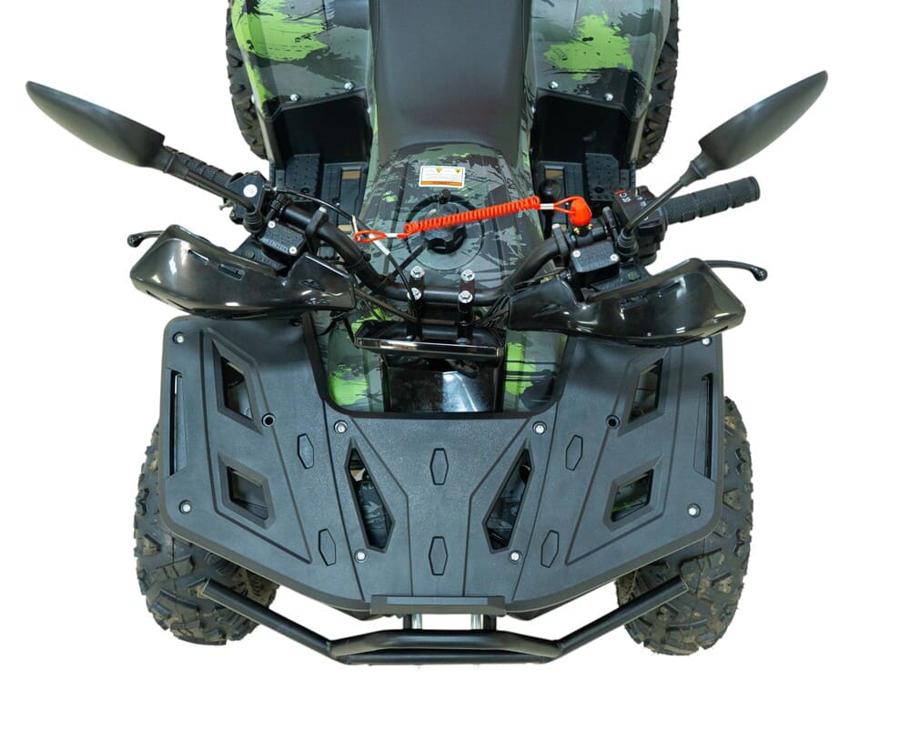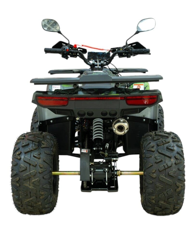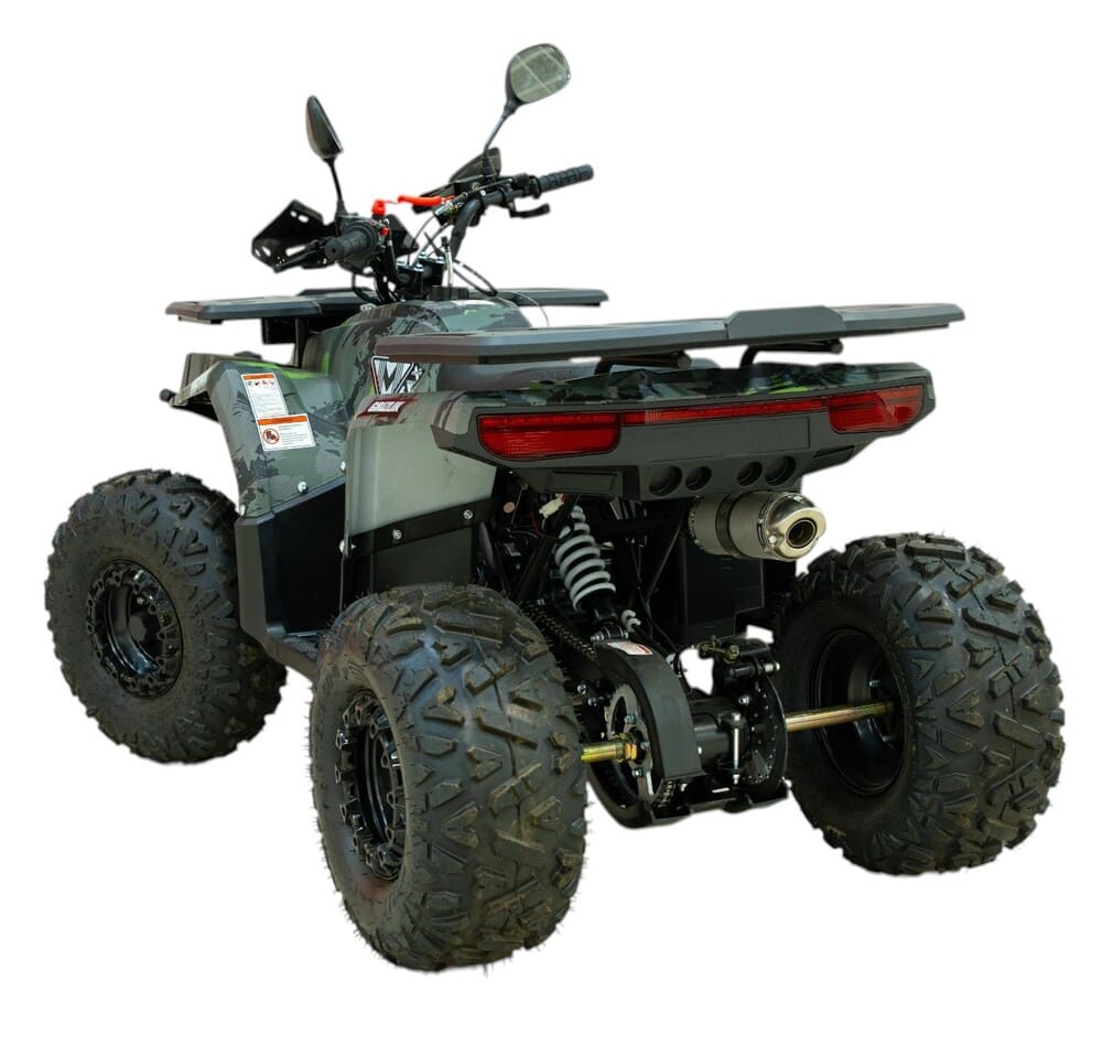 Квадроцикл работает на доступном бензине АИ-92 и имеет топливный бак ёмкостью 2 литра, рассчитанный на короткие поездки. Привод — задний, а прочная стальная рама обеспечивает надёжность и долговечность конструкции. Общий вес модели составляет 102 кг, что делает её лёгкой и маневренной, особенно на узких тропах и сложных участках маршрута.
