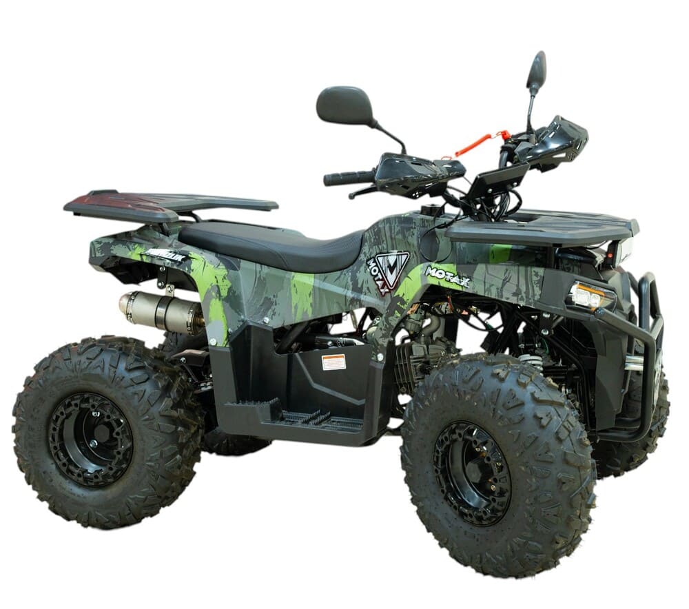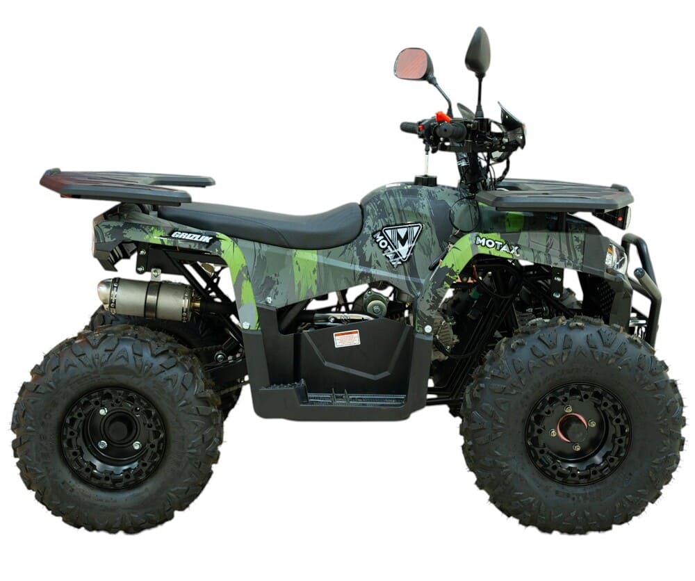 MOTAX GRIZLIK LUX 125 — это улучшенная версия популярного бензинового квадроцикла, созданная для комфортной и безопасной езды по бездорожью. Оснащённый 4-тактным двигателем объёмом 110 см³ и мощностью 9 л.с., он развивает скорость до 55 км/ч и обеспечивает плавное ускорение благодаря полуавтоматической трансмиссии. Запуск двигателя осуществляется с помощью электростартера, что делает его удобным в повседневном использовании даже при низких температурах.