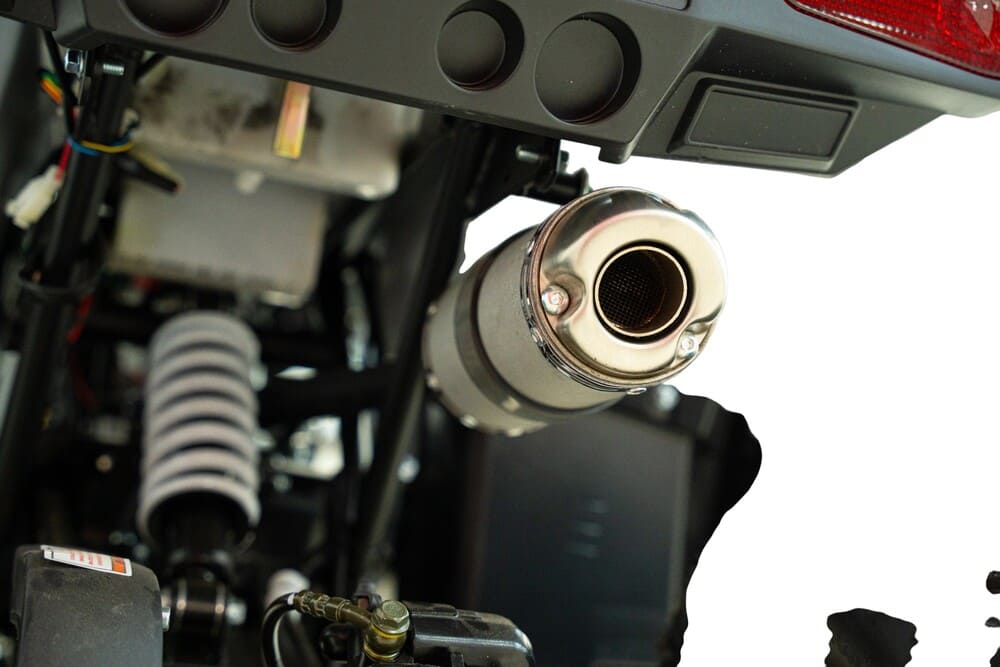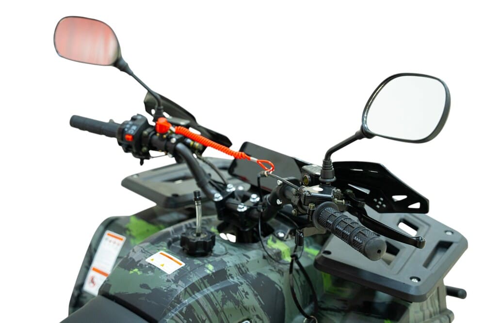 Для комфорта при движении по неровностям установлены двойной рычажный передний амортизатор и моноамортизатор сзади, которые эффективно смягчают удары и повышают устойчивость. Клиренс составляет 11 см, а колёса диаметром 8 дюймов с шинами 19×7-8 (спереди) и 18×9,5-8 (сзади) обеспечивают отличное сцепление на песке, грунте и траве.