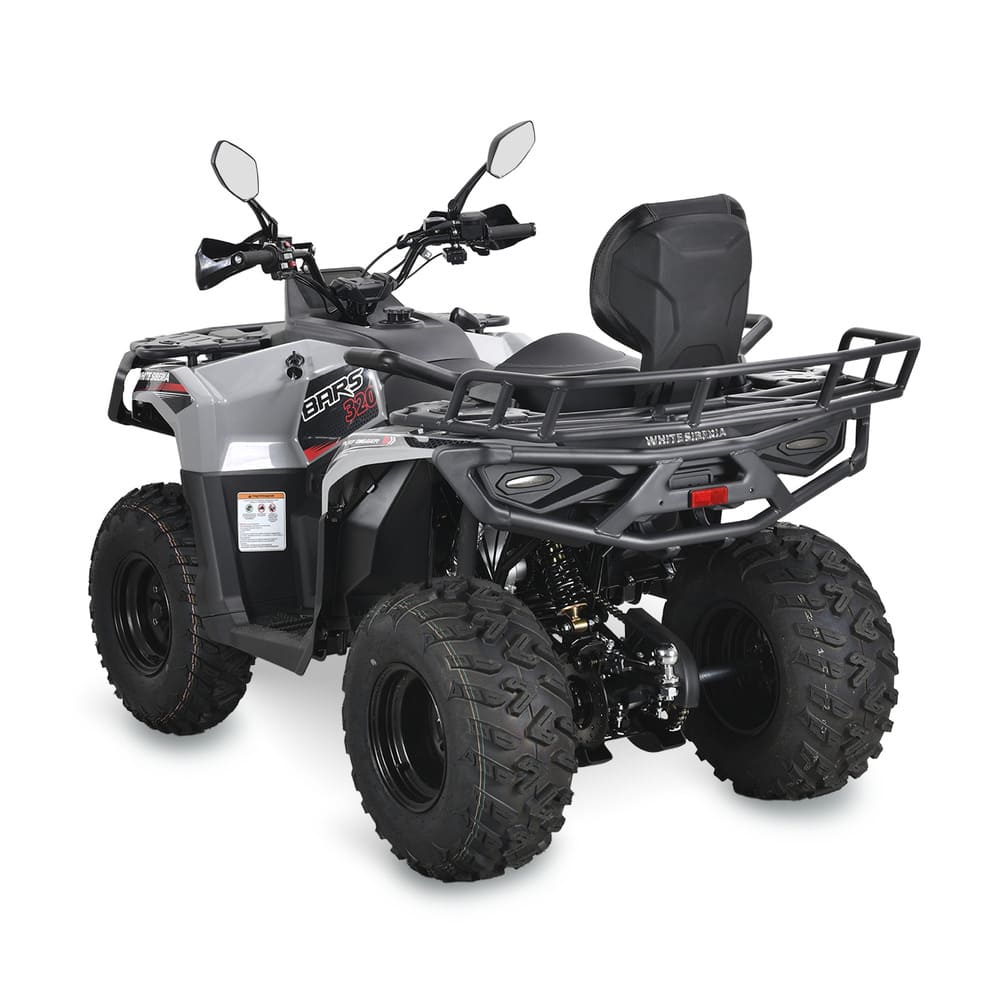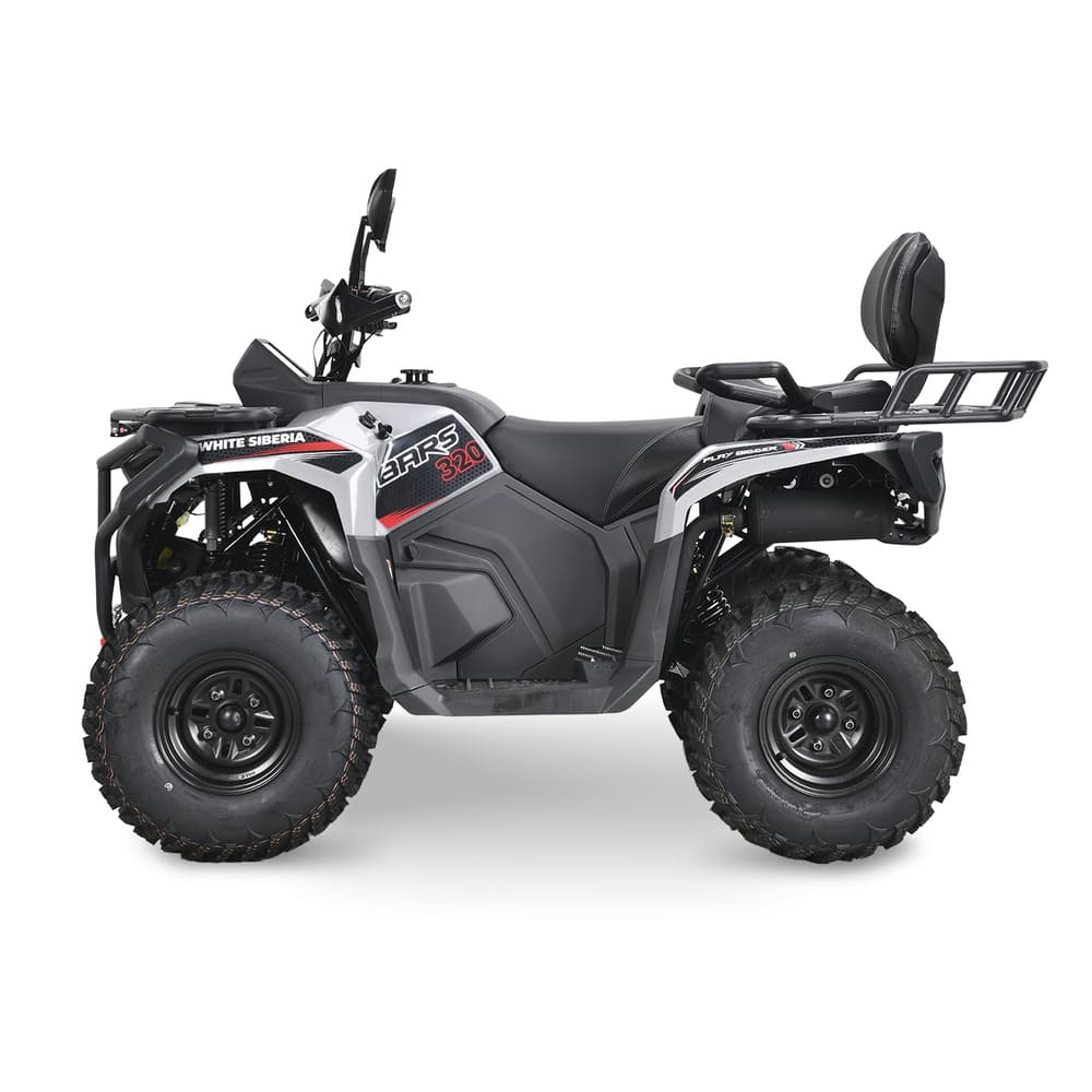WHITE SIBERIA BARS 320 — это надёжный и проходимый бензиновый квадроцикл, созданный для эксплуатации в сложных условиях. Оснащённый 4-тактным двигателем объёмом 238 см³, он развивает мощность до 18 000 Вт (около 24 л.с.) и разгоняется до максимальной скорости 80 км/ч. Модель работает на доступном топливе АИ-92 и выше, что делает её экономичной и удобной в обслуживании.