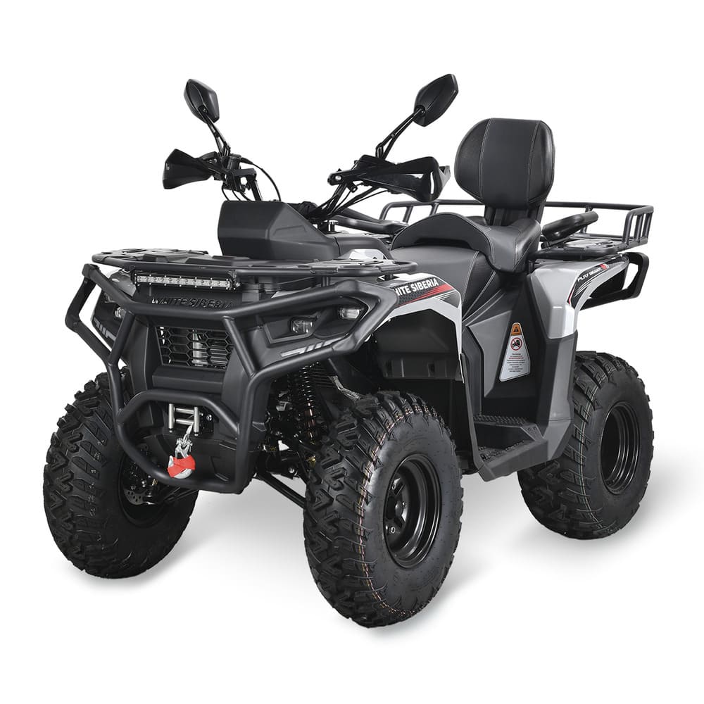 WHITE SIBERIA BARS 320 рассчитан на нагрузку до 200 кг, при собственном весе всего 238 кг. Прочная стальная рама обеспечивает долговечность, а современное оснащение включает LCD-дисплей, светодиодную оптику LED INV и LED-стоп-сигнал. Это идеальный выбор для охотников, рыболовов, дачников и любителей активного отдыха — прочный, простой в управлении и готовый к приключениям.