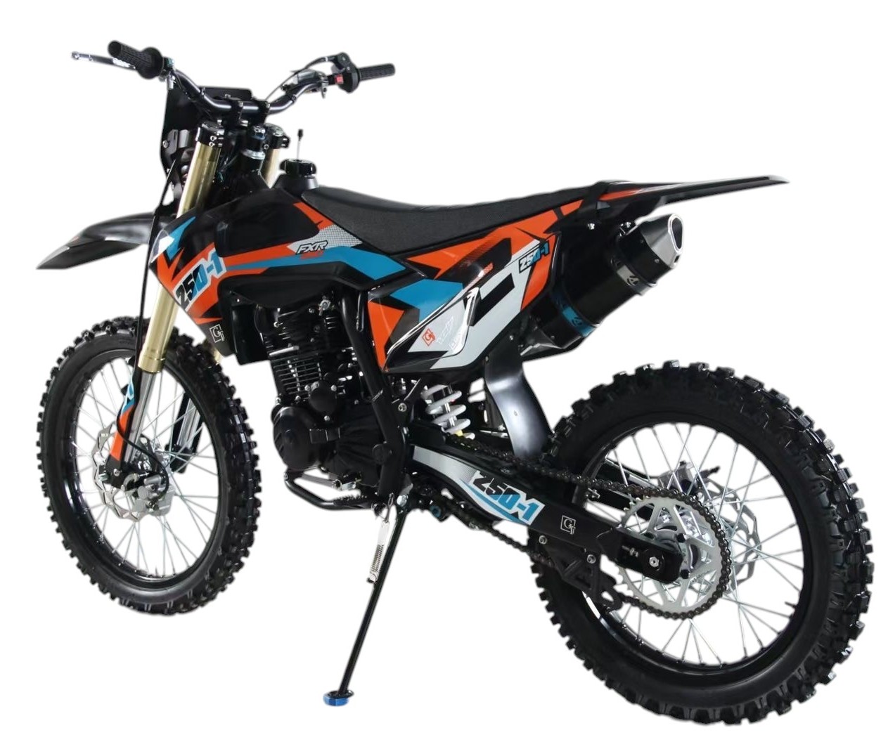 Трансмиссия — механическая коробка передач, обеспечивающая чёткое и надёжное переключение скоростей. Привод — задний, что гарантирует стабильную передачу тяги на дорогу. Колёса имеют разные диаметры: 21 дюйм спереди и 18 дюймов сзади, что улучшает проходимость и устойчивость на поворотах. Для комфорта установлена пружинно-масляная амортизирующая подвеска, эффективно смягчающая удары от неровностей даже на грунтовых трассах.
