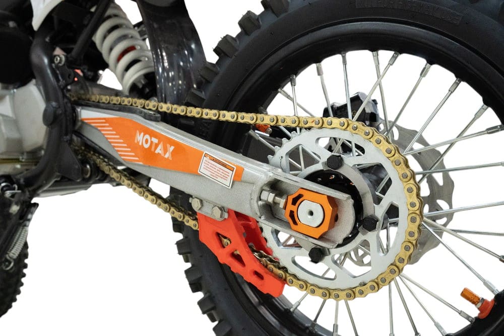 MOTAX MX 125 имеет прочную стальную раму и механическую трансмиссию с несколькими передачами. Колеса оснащены шинами 70/100-17 (переднее) и 90/100-14 (заднее), обеспечивающими отличное сцепление и проходимость. Вес устройства составляет 80 кг, а также предусмотрен аккумулятор напряжением 12 В и емкостью 4000 мА·ч. Это полноценный внедорожный мотоцикл для обучения и активного катания — универсальный и надежный помощник на любой трассе.
