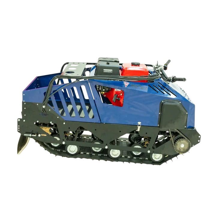 Трансмиссия реализована через надёжный вариатор «Сафари» с ремнём 33×14×1120 мм, а привод на гусеницу передаётся через цепь типа 520. Это обеспечивает плавное ускорение и эффективную передачу мощности. Максимальная скорость достигает 40 км/ч, что позволяет быстро преодолевать значительные расстояния по заснеженной местности.
