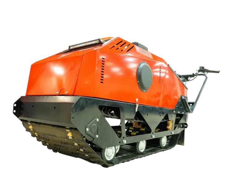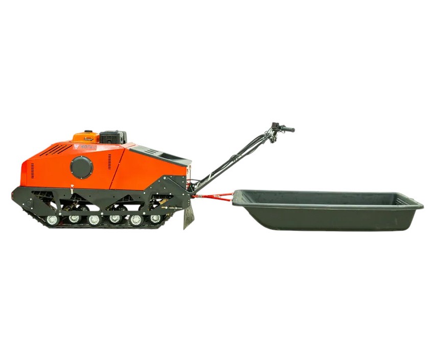 Мотобуксировщик оснащён передовым гидравлическим дисковым тормозом, который значительно повышает безопасность по сравнению с базовыми моделями. Это позволяет надёжно тормозить даже на высокой скорости или под большой нагрузкой. Трансмиссия — проверенный вариатор «Сафари», обеспечивающий плавное ускорение и стабильную работу при изменении условий движения. Привод — цепной, а движитель — прочная резинотканевая гусеница шириной 500 мм.