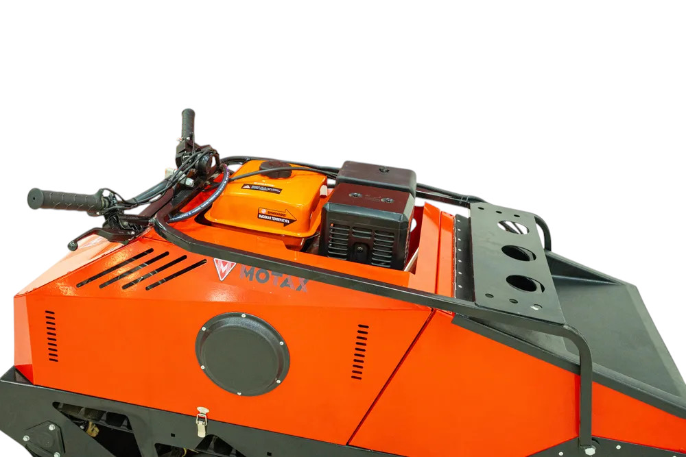 MOTAX HD-21-E — это флагманская модель в линейке мотобуксировщиков, созданная для профессионального использования и эксплуатации в сложных условиях. Оснащённый мощным 4-тактным бензиновым двигателем 192F-3E объёмом 200 см³, он развивает до 21 л.с., что обеспечивает высокую проходимость и способность перевозить грузы до 200 кг. Запуск двигателя возможен как с помощью ручного стартера, так и электростартера — последний особенно удобен в морозную погоду.