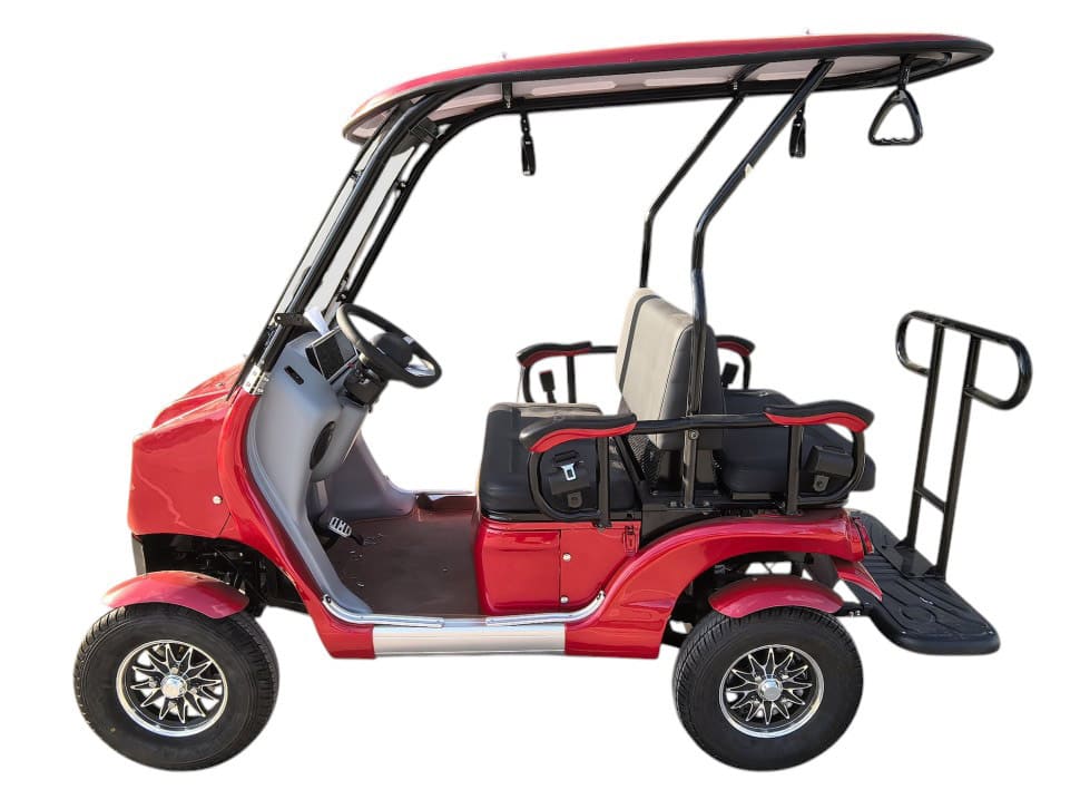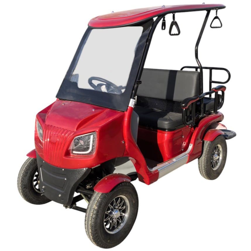 Гольфкар рассчитан на максимальную нагрузку до 300 кг и оснащён двумя рядами сидений по схеме 2+2, обеспечивая удобную посадку для четырёх человек. На приборной панели установлен LED спидометр, отображающий текущую скорость. Конструкция включает дифференциал в трансмиссии, что улучшает проходимость и маневренность, особенно на поворотах и неровных поверхностях.