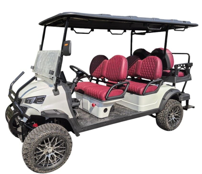 GreenCamel Сонора A42L LUX lifted (4+2, 4kW AC, R14) — это премиальный шестиместный электрогольфкар, созданный для тех, кто ценит комфорт, статус и передовые технологии. Оснащённый мощным AC-двигателем 4000 Вт, он развивает скорость до 38 км/ч и уверенно преодолевает уклоны до 15°. Благодаря увеличенному дорожному просвету 165 мм и длинной колёсной базе 2400 мм, модель обладает исключительной устойчивостью и проходимостью даже на сложных участках.