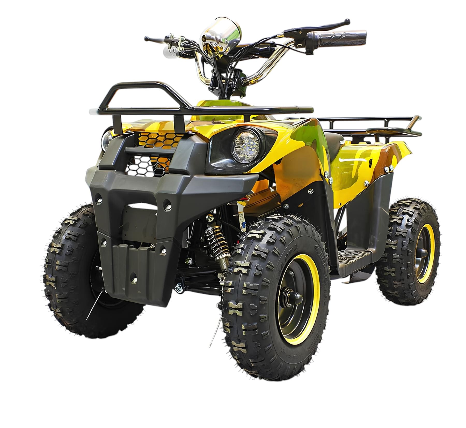 GreenCamel Гоби K40 - компактный и маневренный электрический квадроцикл, созданный специально для юных райдеров. Мощный коллекторный двигатель 800 Вт обеспечивает безопасную максимальную скорость до 20 км/ч, идеально подходящую для детей. Надежная система механических дисковых тормозов гарантирует уверенное торможение в любых условиях, а высота сиденья всего 52 см делает управление удобным даже для самых маленьких водителей.