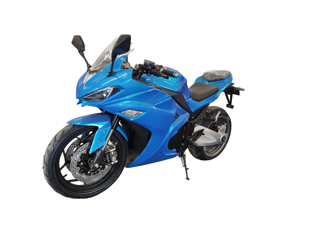 R3 один из самых популярных электроспортбайков в нашем магазине. Главная причина — агрессивный дизайн, скопированный с Yamaha R3. Визуально электромотоцикл отличается от бензинового собрата только отсутствием выхлопной трубы!