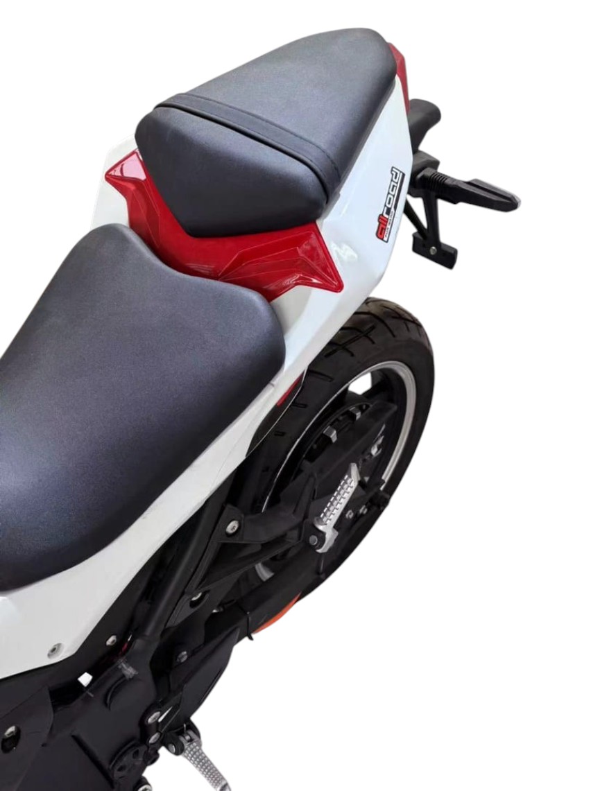 GT R3 — это высокоскоростной электромотоцикл, созданный для тех, кто требует от транспорта максимальной производительности. Оснащённый задним приводом и двигателем мощностью 3000 Вт, он разгоняется до впечатляющих 160 км/ч и обеспечивает запас хода до 120 км благодаря аккумулятору Li-ion ёмкостью 70 000 мА·ч. Полная зарядка занимает всего 6 часов, что делает его пригодным для активного использования в городских и загородных условиях без длительных простоев.
