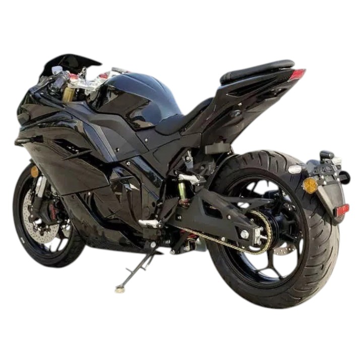 GT DRAGON — это флагманский электромотоцикл, созданный для экстремальной скорости и технологичной езды. Оснащённый задним двигателем мощностью 4000 Вт, он разгоняется до 160 км/ч и обеспечивает запас хода до 120 км благодаря аккумулятору Li-ion ёмкостью 70 000 мА·ч. Полная зарядка занимает 6 часов, а максимальная нагрузка — до 150 кг, что делает его ориентированным на одного райдера. Мощность и динамика модели сравнимы с топовыми бензиновыми мотоциклами, но без выбросов и шума.