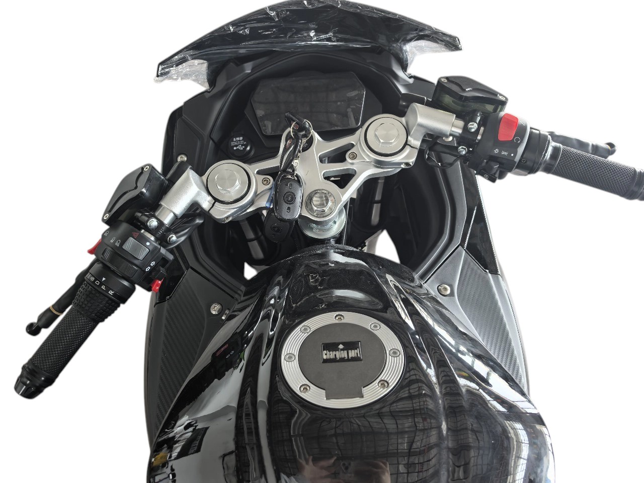 Конструкция мотоцикла сочетает спортивную аэродинамику и точность: общий вес составляет 195 кг, а колёса диаметром 10 дюймов обеспечивают исключительную маневренность в городском потоке. Подвеска включает перевёрнутую телескопическую вилку спереди и моноамортизатор сзади, работающие на основе пружинно-масляной системы. Это гарантирует максимальный контроль даже на высокой скорости и в агрессивных поворотах, сохраняя плавность хода на неровных участках.