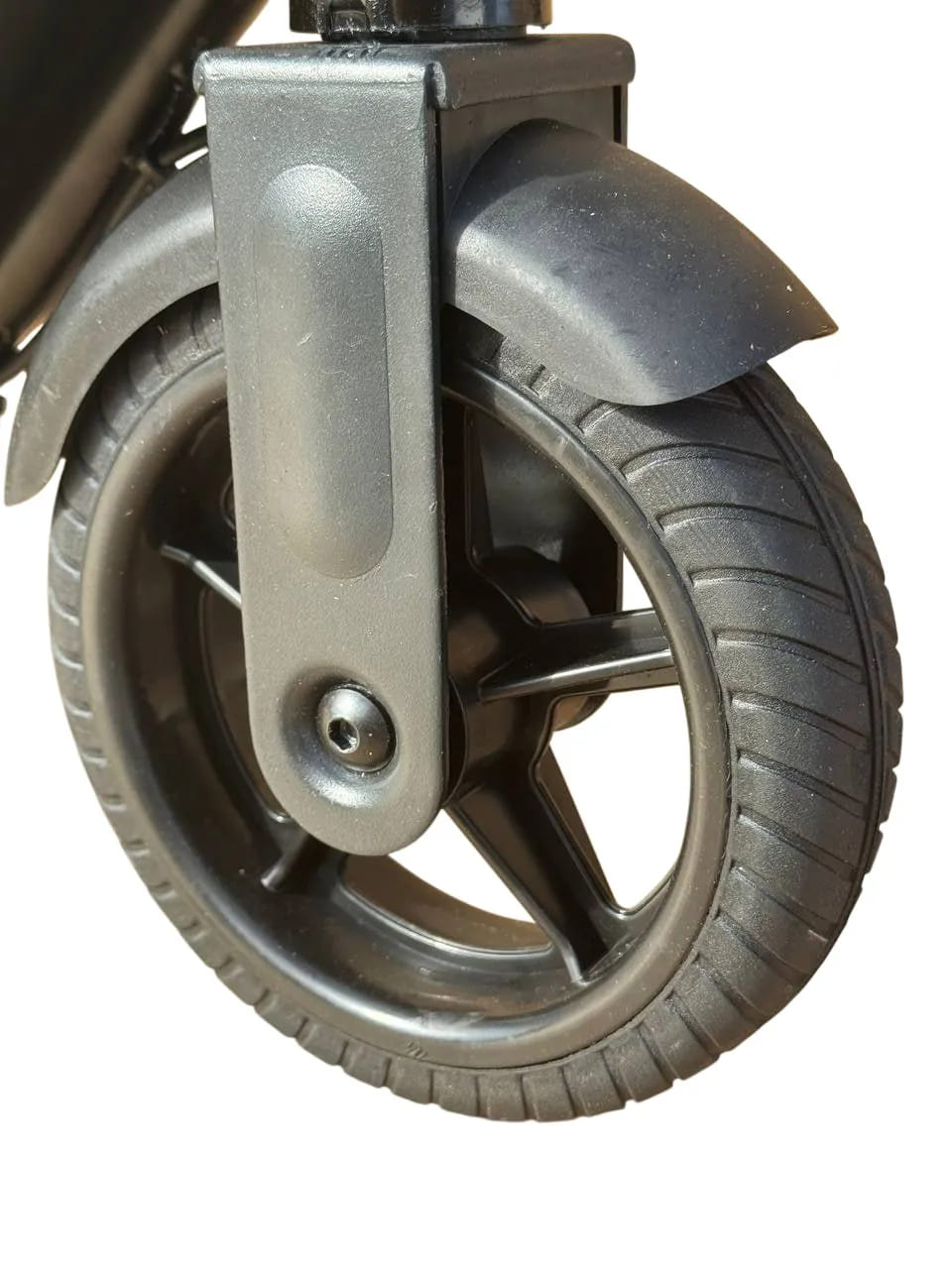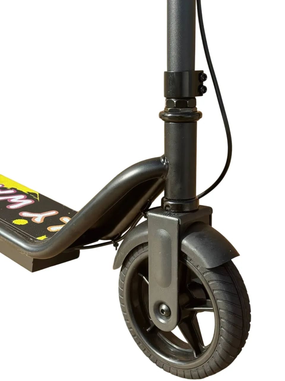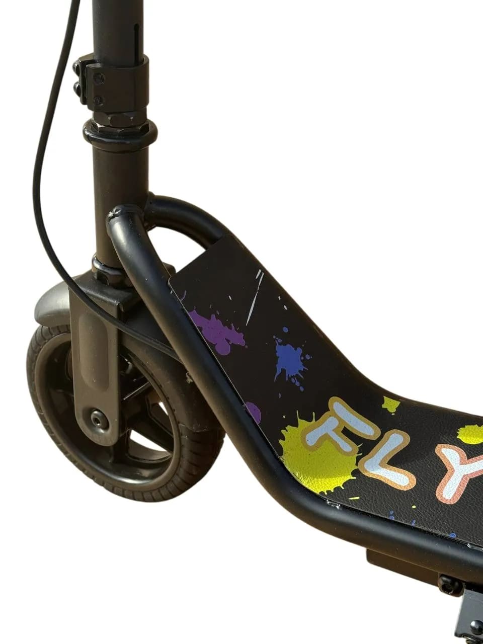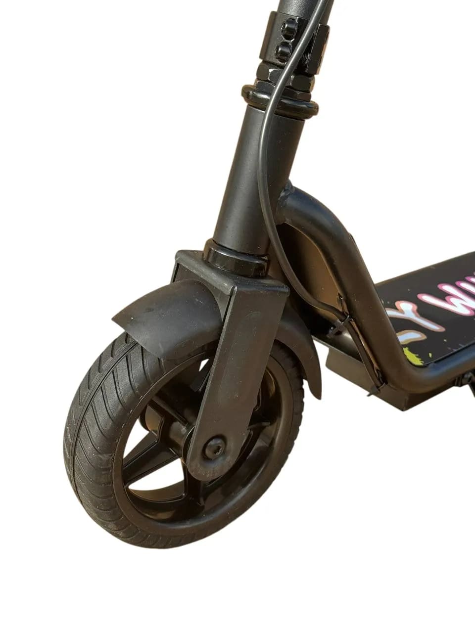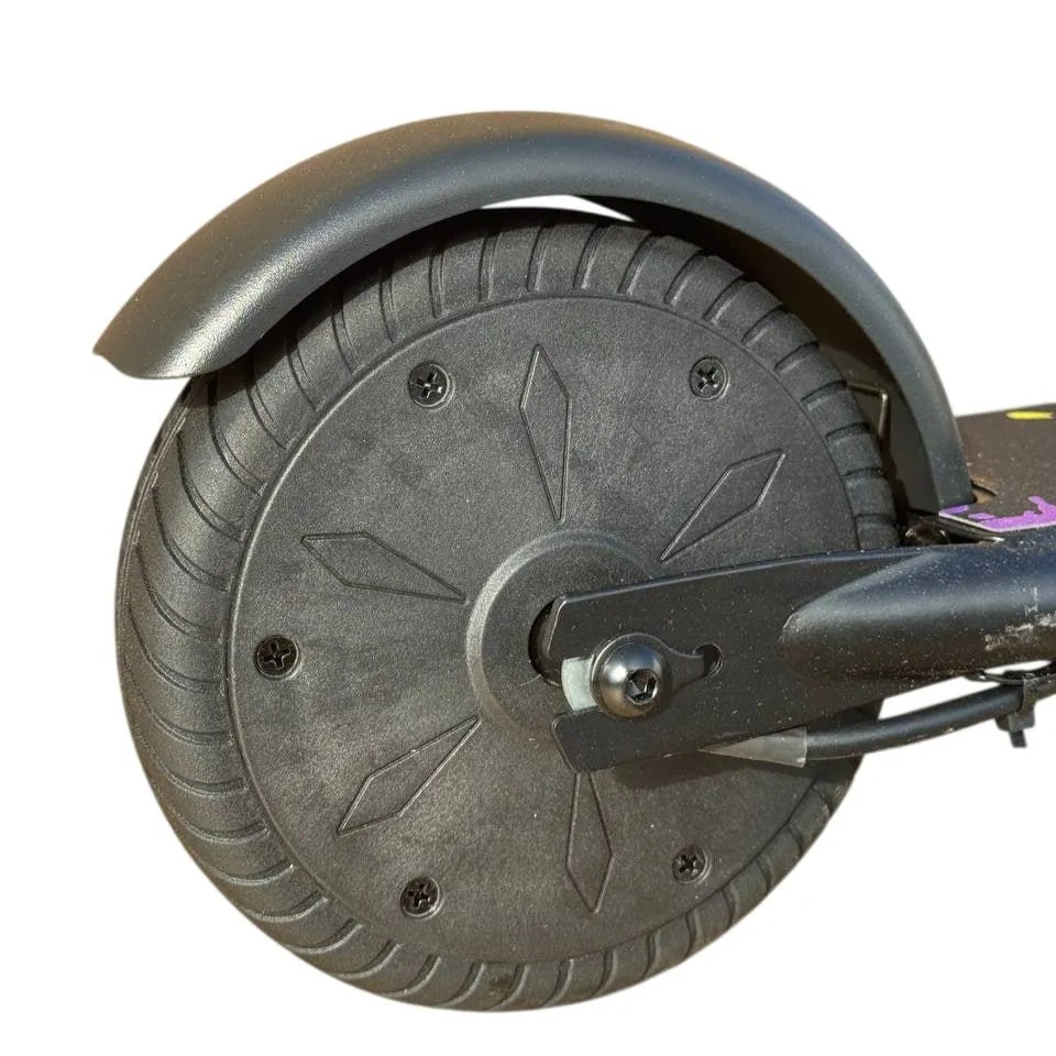 Конструкция выполнена из прочной стальной рамы, обеспечивающей надёжность при минимальном весе — всего 7,4 кг. Самокат складной, легко помещается в багажник, офис или угол квартиры. Установлены цельнолитые колёса диаметром 6,5 дюйма, которые не требуют ухода и устойчивы к проколам, но могут передавать больше вибраций от дороги. Тормозная система — электрическая, замедляет двигатель при отпускании ручки газа.