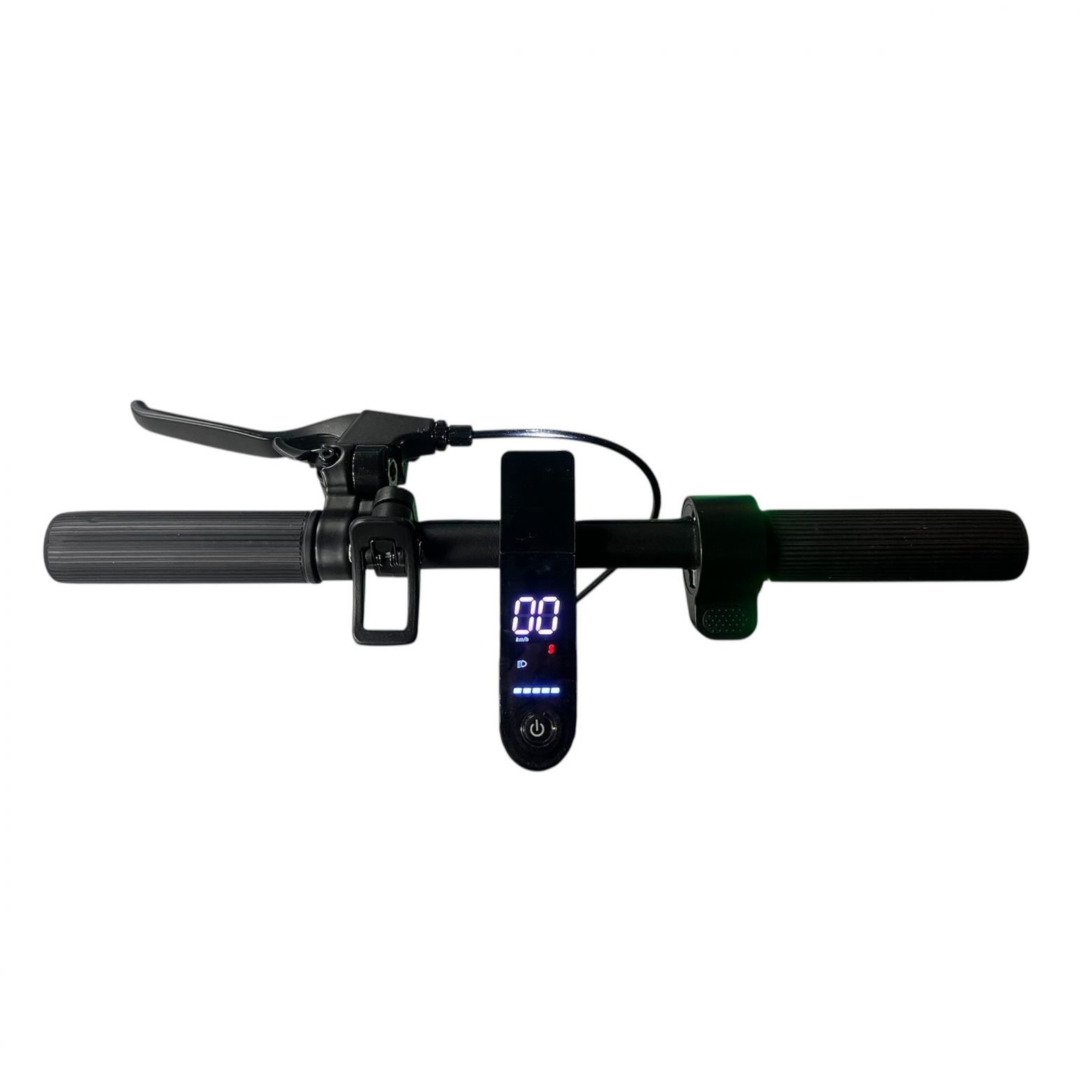 Для безопасности установлены барабанные тормоза, обеспечивающие стабильное замедление, а также цифровой дисплей, отображающий скорость, уровень заряда, режим езды и текущее состояние системы. Колёса диаметром 8,5 дюйма — литые, не подвержены проколам и не требуют обслуживания, что увеличивает долговечность и снижает эксплуатационные расходы.