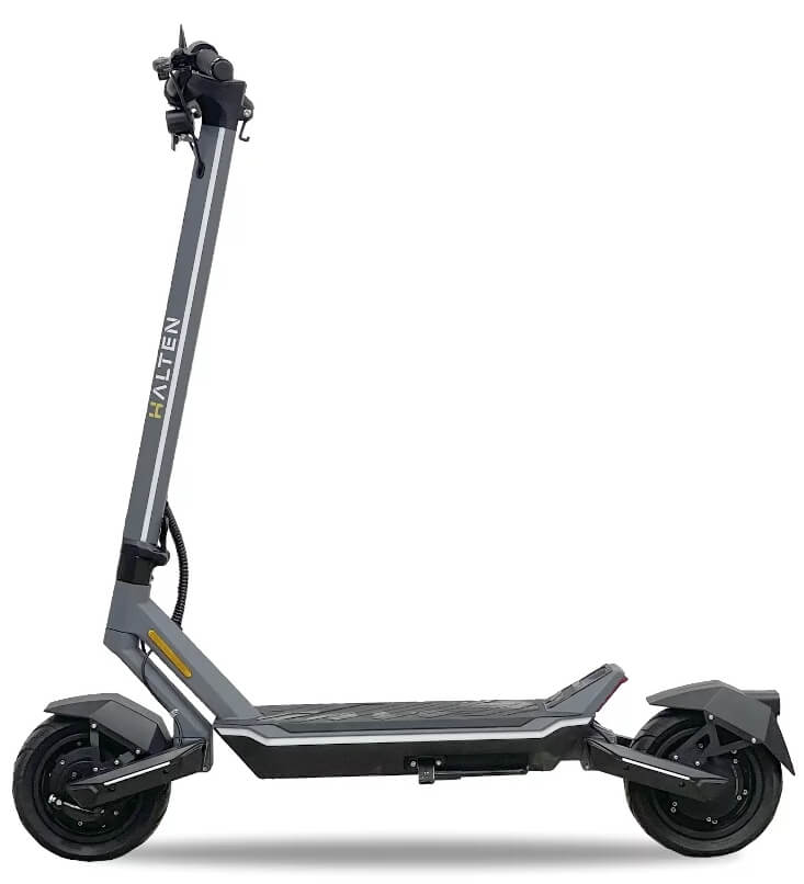 Электросамокат Halten Cross v.4 может разгоняться до скорости 55 км/ч и преодолевать расстояние в 65 км без подзарядки. Аккумулятор оснащён системой управления батареями (BMS), которая отслеживает температуру ячеек и контролирует балансировку по напряжению.