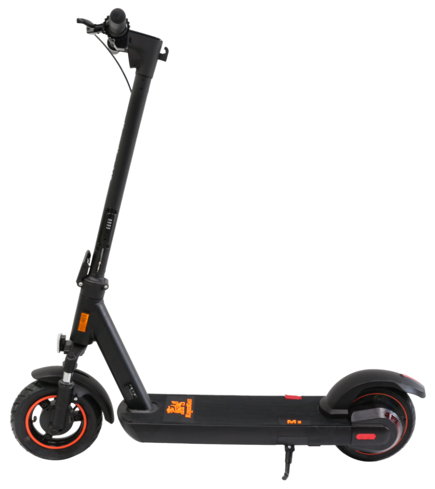 Самокат оснащен пневматическими 10-дюймовыми колесами, которые обеспечивают комфортное передвижение даже по неровным дорогам. Дополнительный комфорт придаёт передний амортизатор.