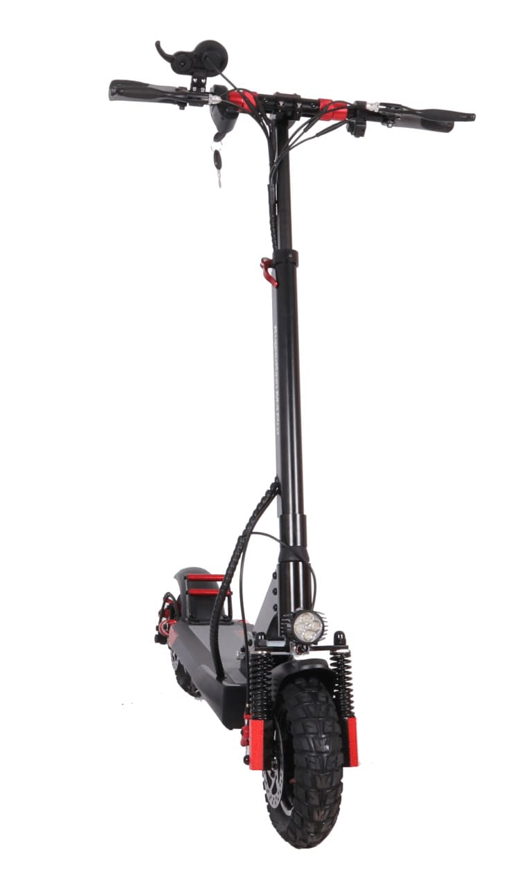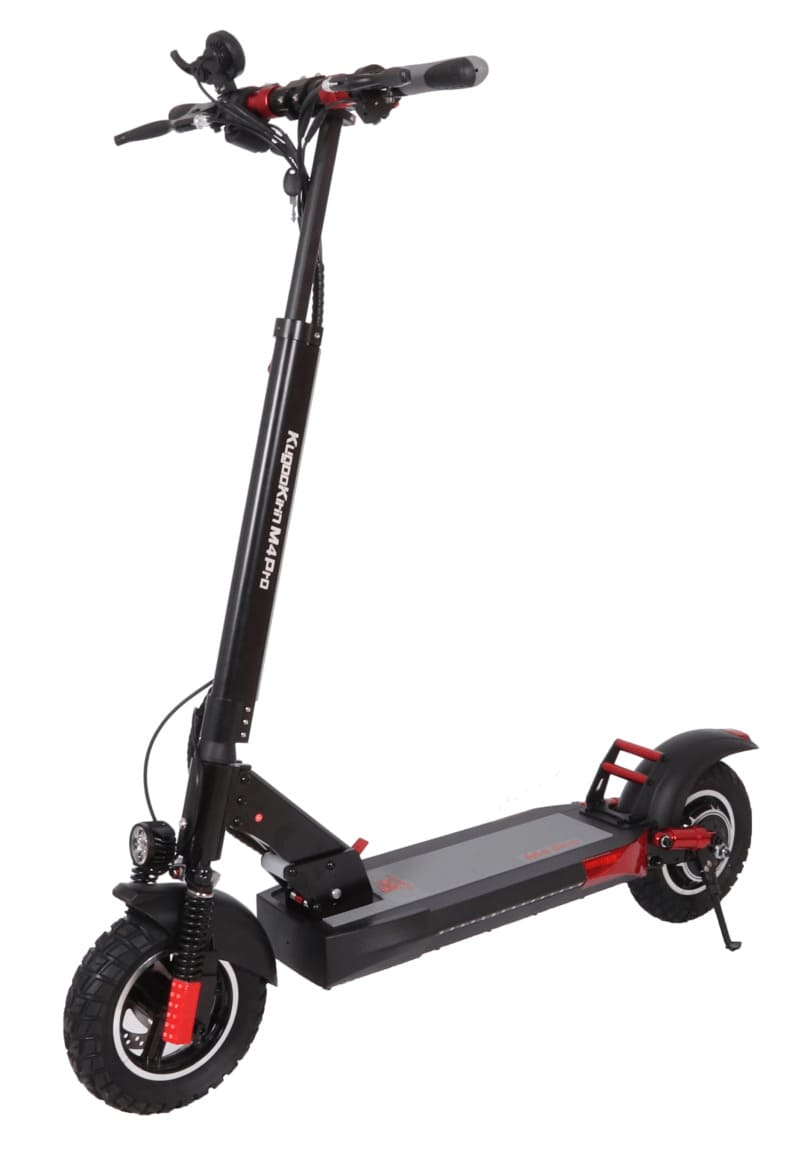 Электросамокат Kugoo Kirin M4 Pro (18 Ah) также имеет яркую LED-фару спереди, стоп-сигнал и боковую подсветку для повышения видимости. При необходимости его легко складывать, и он помещается практически в любой багажник автомобиля.