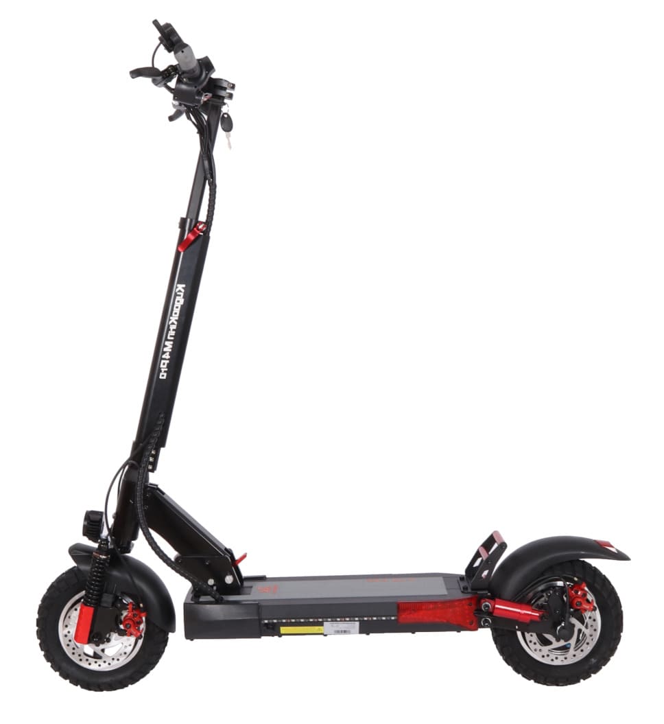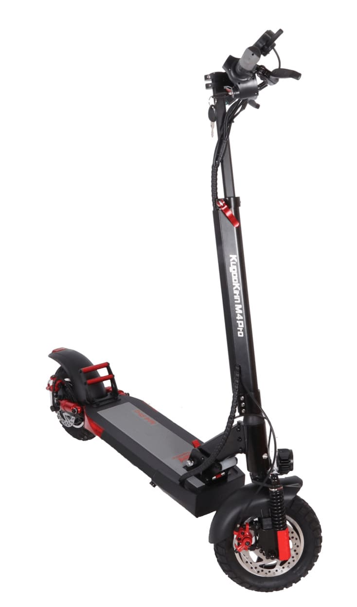 Этот электросамокат Kugoo KirinM4 Pro (18 Ah) оснащен широкими надувными колесами диаметром 10 дюймов и надувными шинами, что делает его подходящим для любых видов дорог. Тормозная система включает в себя два дисковых тормоза - спереди и сзади.