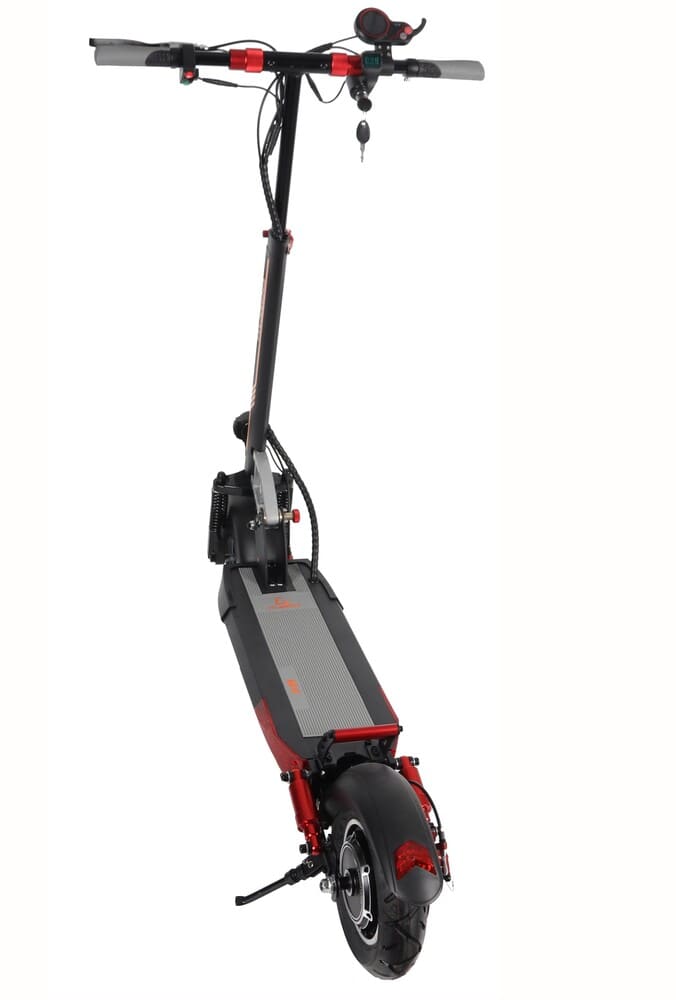 Высоту как сиденья, так и руля можно настроить по вашему удобству. Электросамокат также можно легко сложить для транспортировки. Руль складывается, а рукоятки можно легко убрать вдоль стойки. Рулевая стойка отпускается к деке, и в сложенном состоянии его можно удобно переносить, поместить в багажник автомобиля или хранить.
