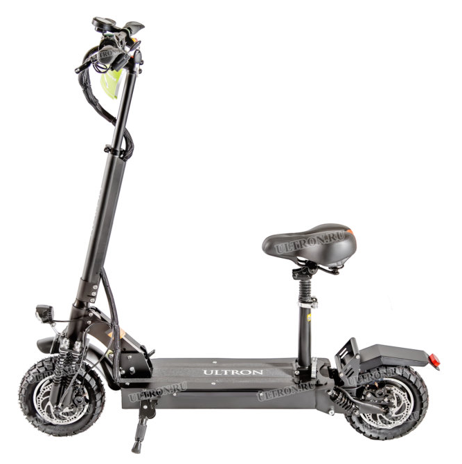 С электросамокатом ULTRON T10 вы сможете наслаждаться спокойными поездками, развивая скорость до 70 км/час, и проезжая на одном заряде до 50 километров. При своем легком весе в 35 кг, он способен перевозить человека массой до 150 кг.