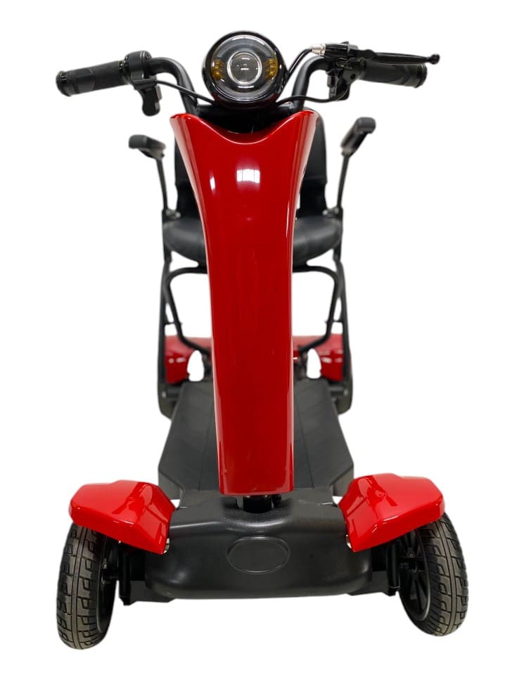 Трицикл оборудован множеством функций, направленных на безопасность и комфорт. Корпус светодиодной фары также служит информационным LED-дисплеем, отображающим данные об остатке заряда батареи. Для дополнительной защиты предусмотрены страховочные колеса, предотвращающие опрокидывание. Модель демонстрирует отличную курсовую устойчивость в поворотах благодаря геометрии расположения колес и низкому центру тяжести. Это делает ее идеальной для использования в различных условиях.