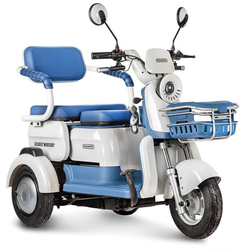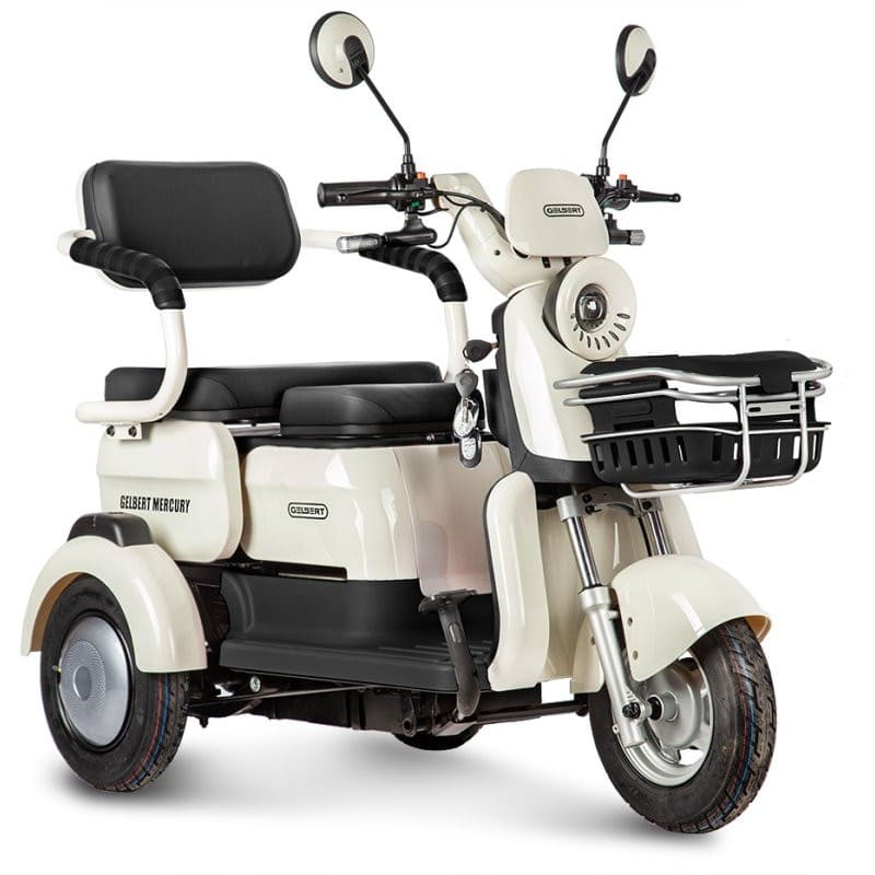 Rutrike Gelbert Mercury — это компактный и маневренный электротрицикл с задним приводом, разработанный для удобного и безопасного передвижения в городских условиях. Его конструкция сочетает в себе практичность и надежность, что делает его отличным выбором для повседневных поездок.
