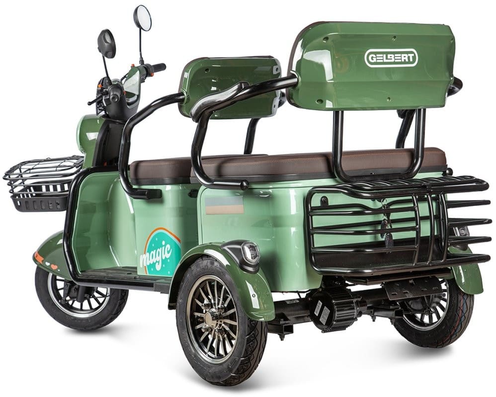 Rutrike Gelbert Kang — это мощный и устойчивый электротрицикл, разработанный для комфортной и практичной езды в городских условиях и на коротких дистанциях за его пределами. Модель оснащена двигателем мощностью 800 Вт, обеспечивающим плавное ускорение и максимальную скорость до 25 км/ч. Это делает его идеальным выбором как для перевозки грузов, так и для повседневного использования.