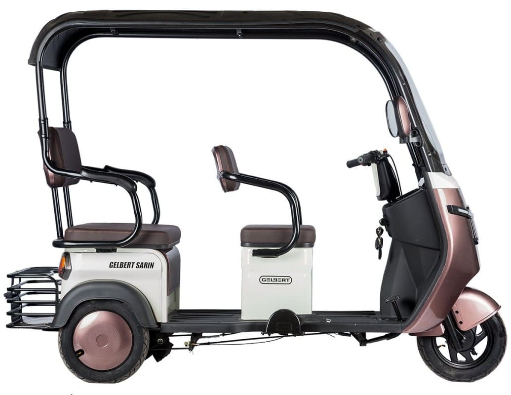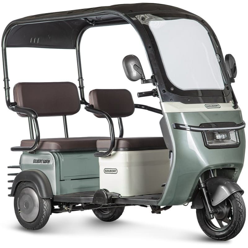 Rutrike Gelbert Sarin — это мощный и вместительный электротрицикл, разработанный для перевозки грузов и пассажиров в городских условиях. Модель оснащена двигателем мощностью 1000 Вт, обеспечивающим уверенный разгон и стабильную работу даже под высокой нагрузкой. Максимальная скорость ограничена на уровне 25 км/ч, что соответствует требованиям по использованию электротранспорта в большинстве регионов.