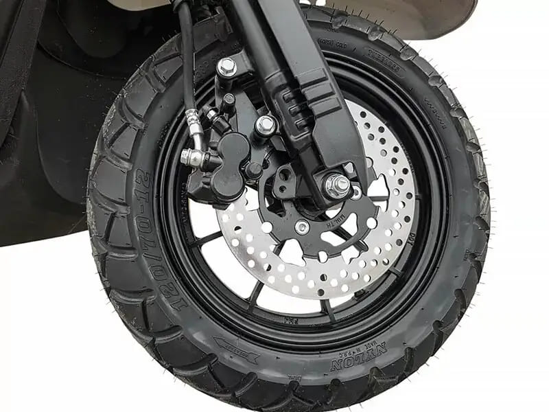 Для безопасности установлены двухпоршневые гидравлические дисковые тормоза спереди и сзади — одна из самых эффективных систем торможения, обеспечивающая быстрое и надёжное замедление даже на высокой скорости. Подвеска включает передние и задние амортизаторы, которые эффективно смягчают удары от неровностей дороги. Колёса диаметром 12 дюймов обеспечивают хорошее сцепление и устойчивость на любом покрытии.