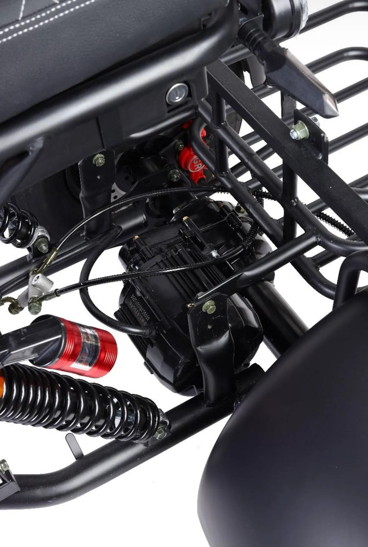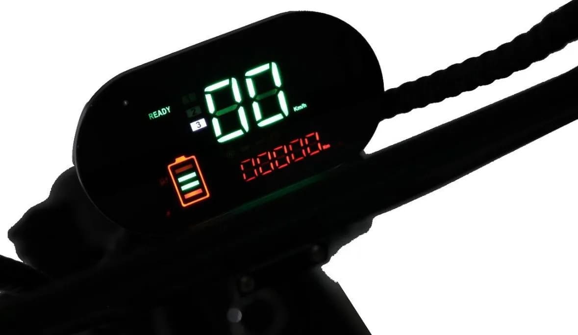 Для безопасности установлены гидравлические дисковые тормоза спереди и сзади, обеспечивающие мощное и предсказуемое торможение даже на высокой скорости. Подвеска включает передние и задние амортизаторы, эффективно смягчающие удары от ям и выбоин. Колёса диаметром 12 дюймов обеспечивают отличное сцепление и проходимость на различных типах покрытий — от асфальта до грунтовки.