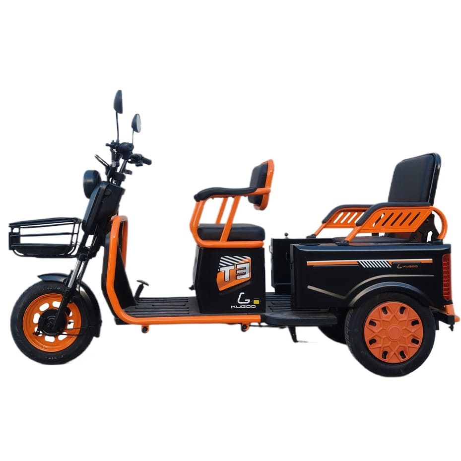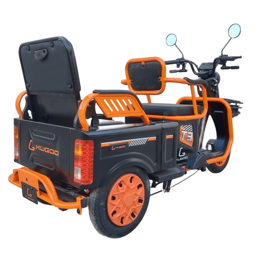 Kugoo T3 — это удобный и практичный электротрицикл, созданный для комфортной езды вдвоем. Максимальная нагрузка составляет до 150 кг, что позволяет использовать его как с пассажиром, так и с дополнительным багажом. Мощность двигателя — 500 Вт, а максимальная скорость ограничена на уровне 35 км/ч, что делает его безопасным и простым в управлении средством передвижения.