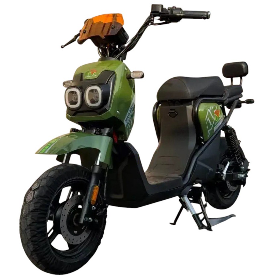 Электроскутер работает от литий-ионного аккумулятора 60 В / 60 А·ч — ёмкость одной из самых высоких в своём классе, что позволяет преодолевать до 100 км на одном заряде. Полная зарядка занимает около 10 часов, а интегрированная система контроля заряда обеспечивает безопасность и долгий срок службы батареи. На руле установлен цифровой дисплей, отображающий скорость, уровень заряда и режим езды.